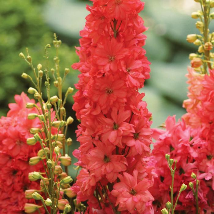 Mounding lacy-green foliage contrasts beautifully with the stunning coral-red flowers on this compact plant.